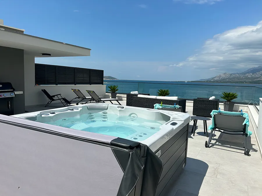 Liebe Gäste, wir freuen uns sehr, Sie in unserem exklusiven Penthouse-Apartment mit großer Dachterrasse und atemberaubendem Blick auf das Meer und das Velebitgebirge begrüßen zu dürfen. Hier erwartet Sie ein Ort der Ruhe und Entspannung, wo Sie den Alltag hinter sich lassen und die Schönheit der Natur in vollen Zügen genießen können. Wir wünschen Ihnen einen traumhaften Urlaub und stehen Ihnen jederzeit für Fragen und Wünsche zur Verfügung.